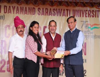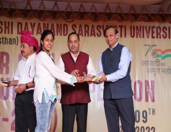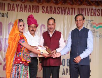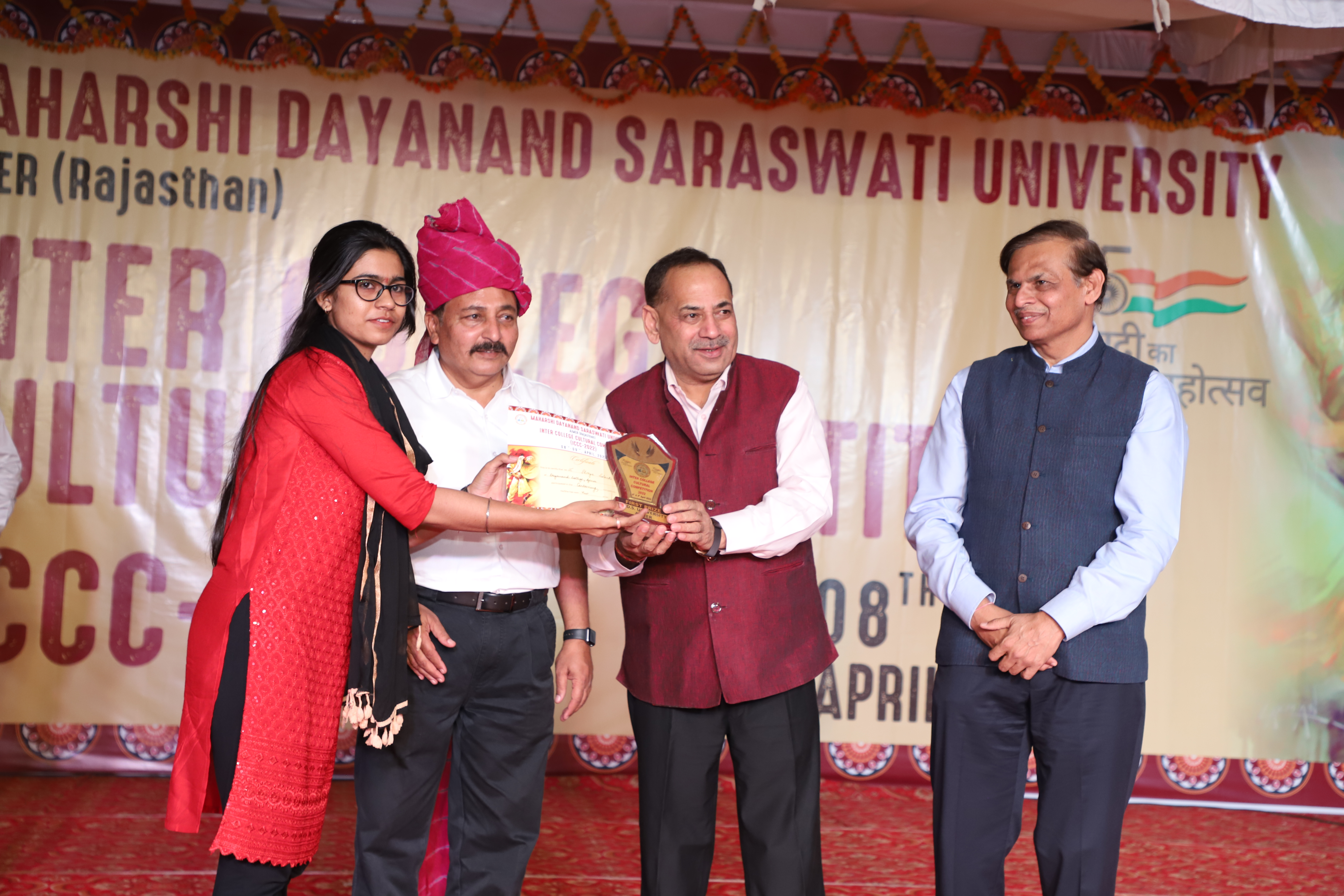 Honorable Vice Chancellor Prof. Anil Kumar Shukla and Chief Guest Prof. Anand Bhalerao Vice Chancellor Central University of Rajasthan ,Ajmer Awarding the winner of Inter - College Cultural Competition
