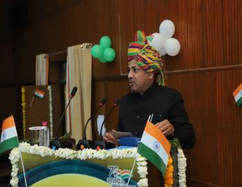 माननीय कुलपति प्रो अनिल कुमार शुक्ला 74वा गणतंत्र दिवस पर धव्ज़ रोहण करते व उद्बोधन देते हुये