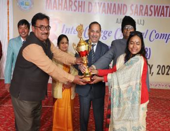 Honorable Vice Chancellor Prof. Anil Kumar Shukla and Chief Guest Prof. Anand Bhalerao Vice Chancellor Central University of Rajasthan ,Ajmer Awarding the winner of Inter - College Cultural Competition