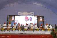 His Excellency Governor and Chancellor Kalraj Mishra, Honorable Higher Education Minister Rajendra Singh Yadav and Honorable Vice Chancellor Prof. Anil Kumar Shukla giving gold medals and degrees to students at the tenth convocation