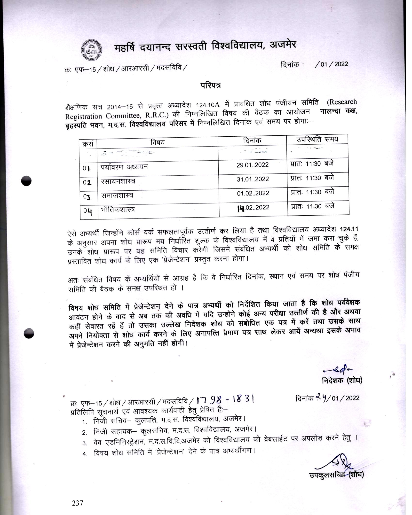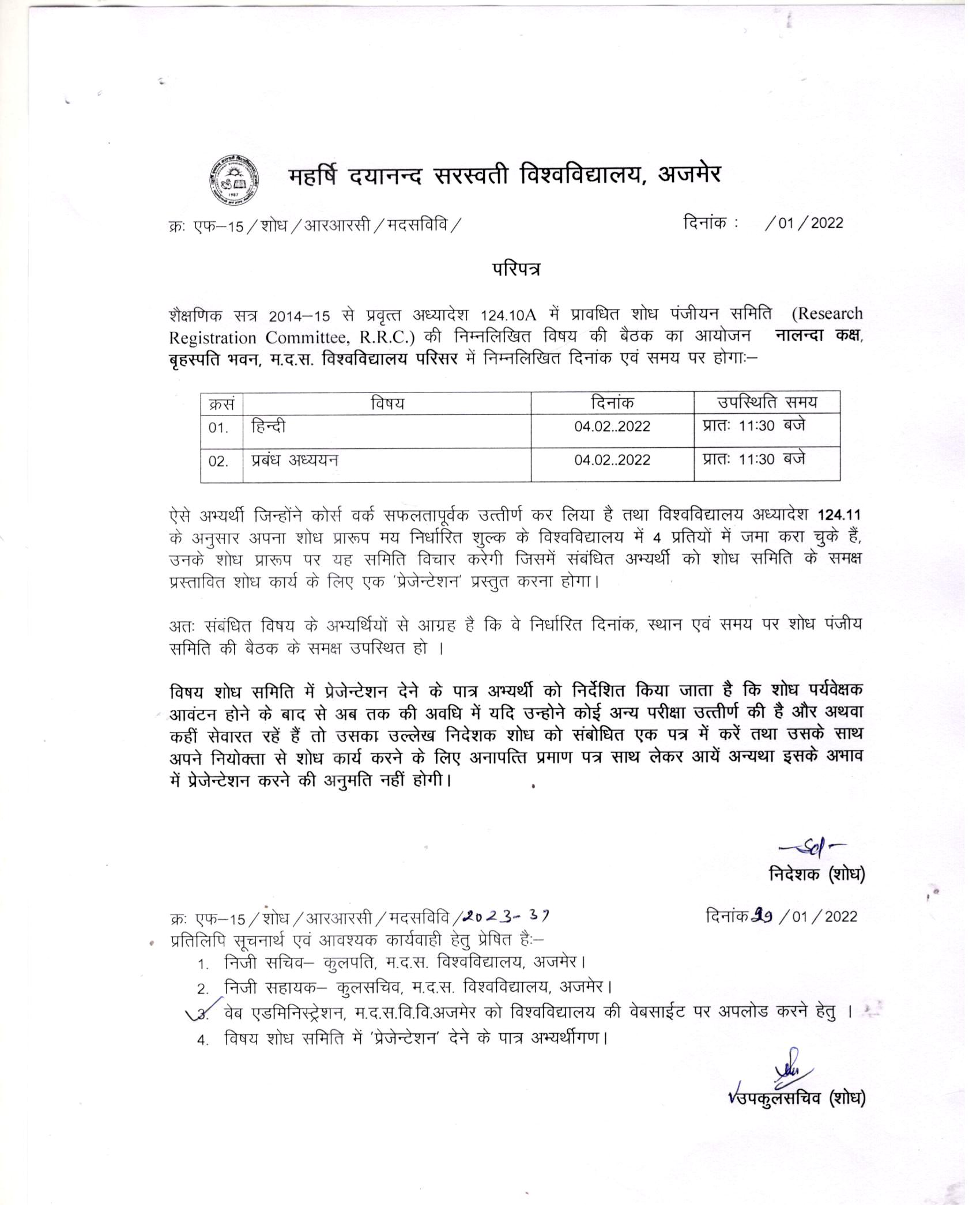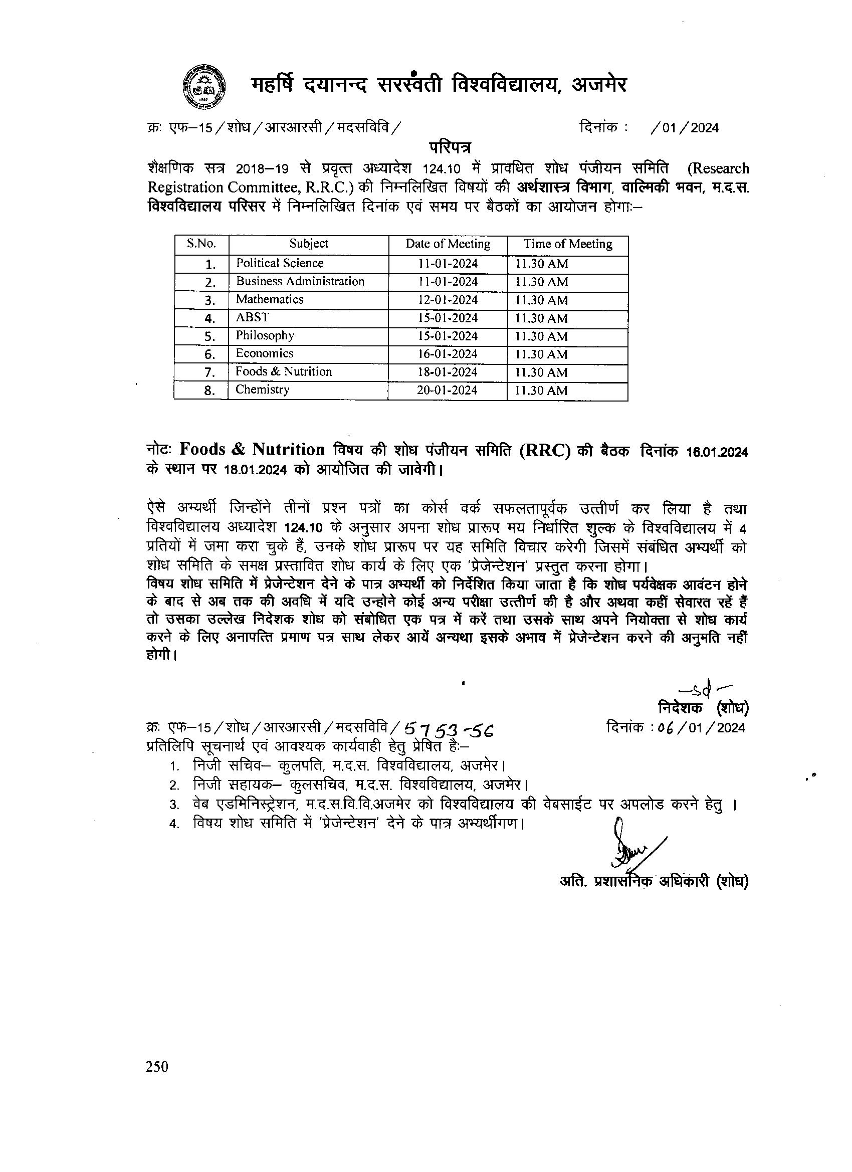 Download• RRC Meeting for Subjects: Environment Sci., Maths, Poli. Sci., History, Sanskrit, Geography, Busi. Adm. & ABST