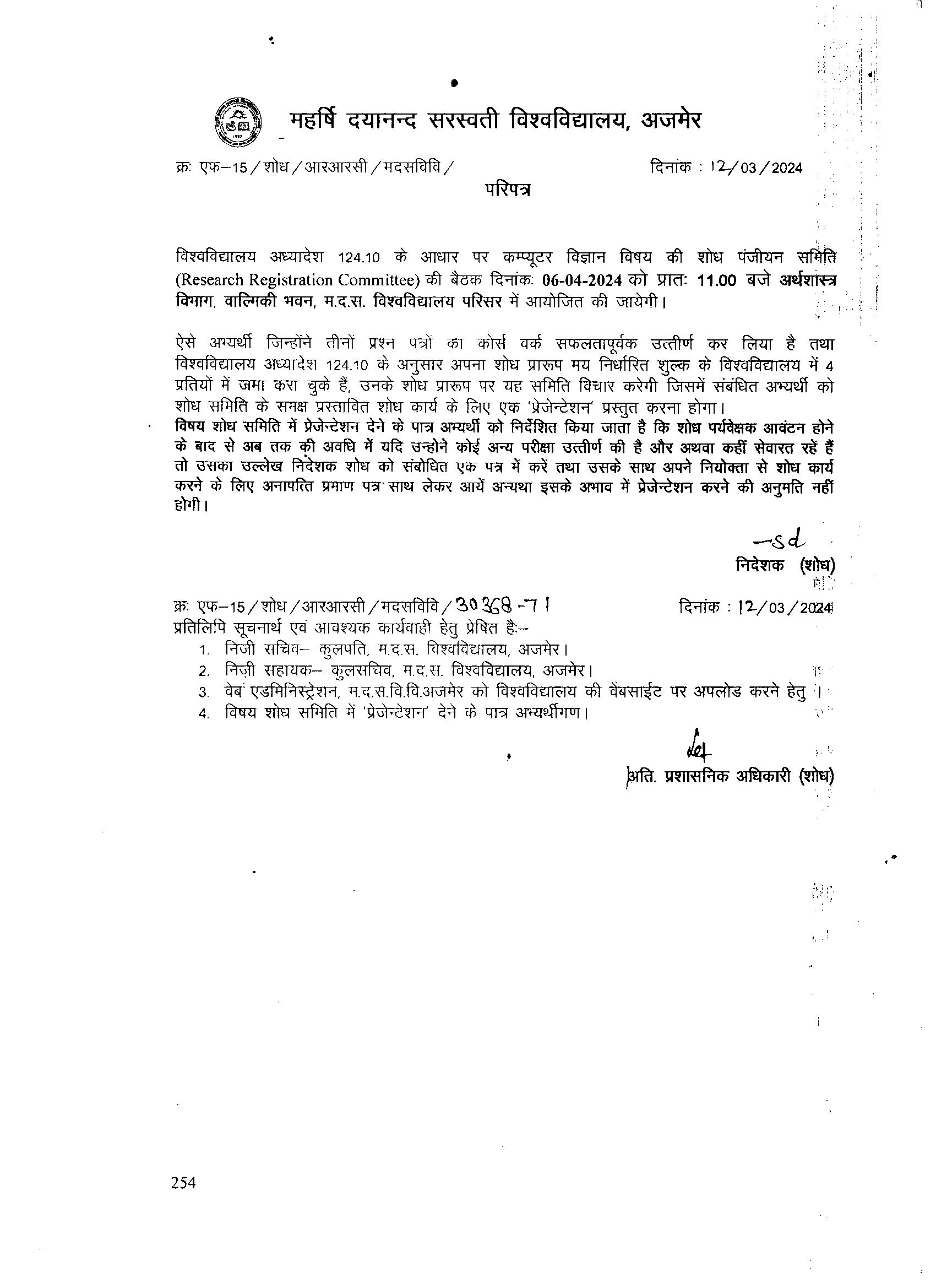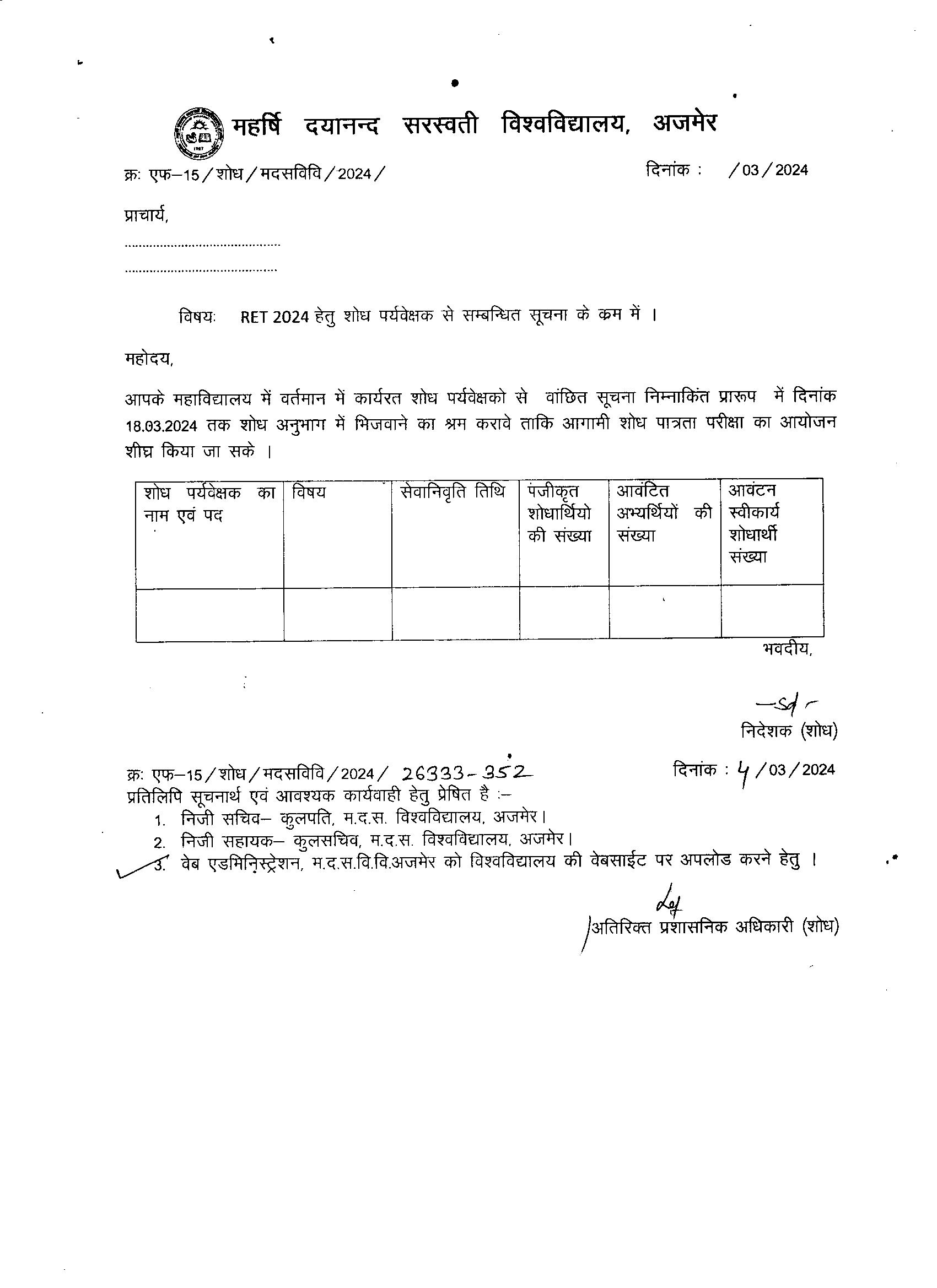Download• Research Supervisor Allotment Letter(Commerce & Management) For RET 2016