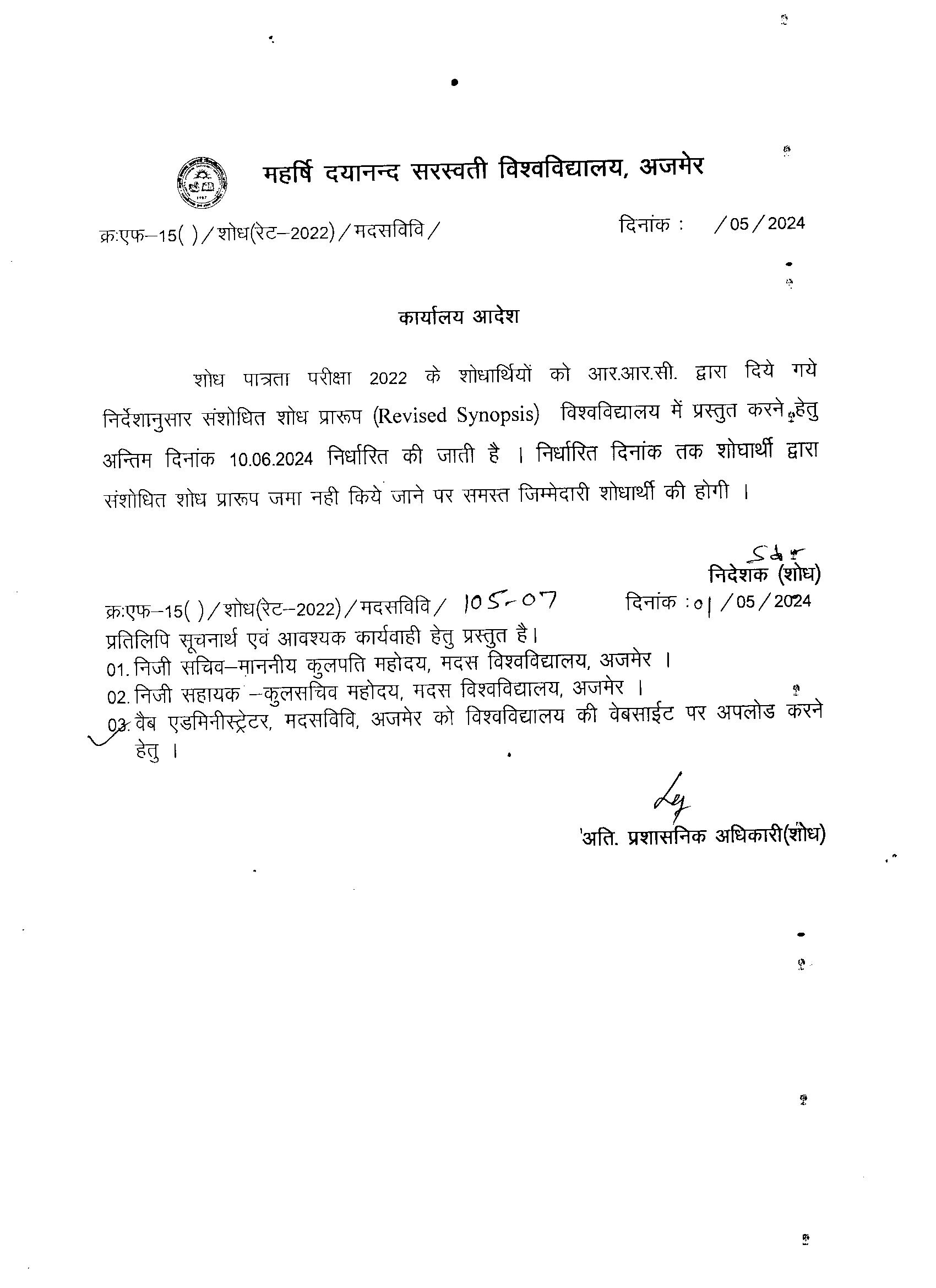 Download• Revised Date for Submission for revised Synopsis