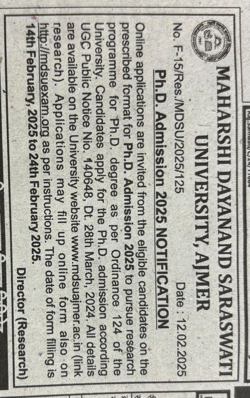 Download• Ph.D entrance 2025 course work for Management, commerce, Education and Physical Education dated 22-1-2026 to 9-2-2026