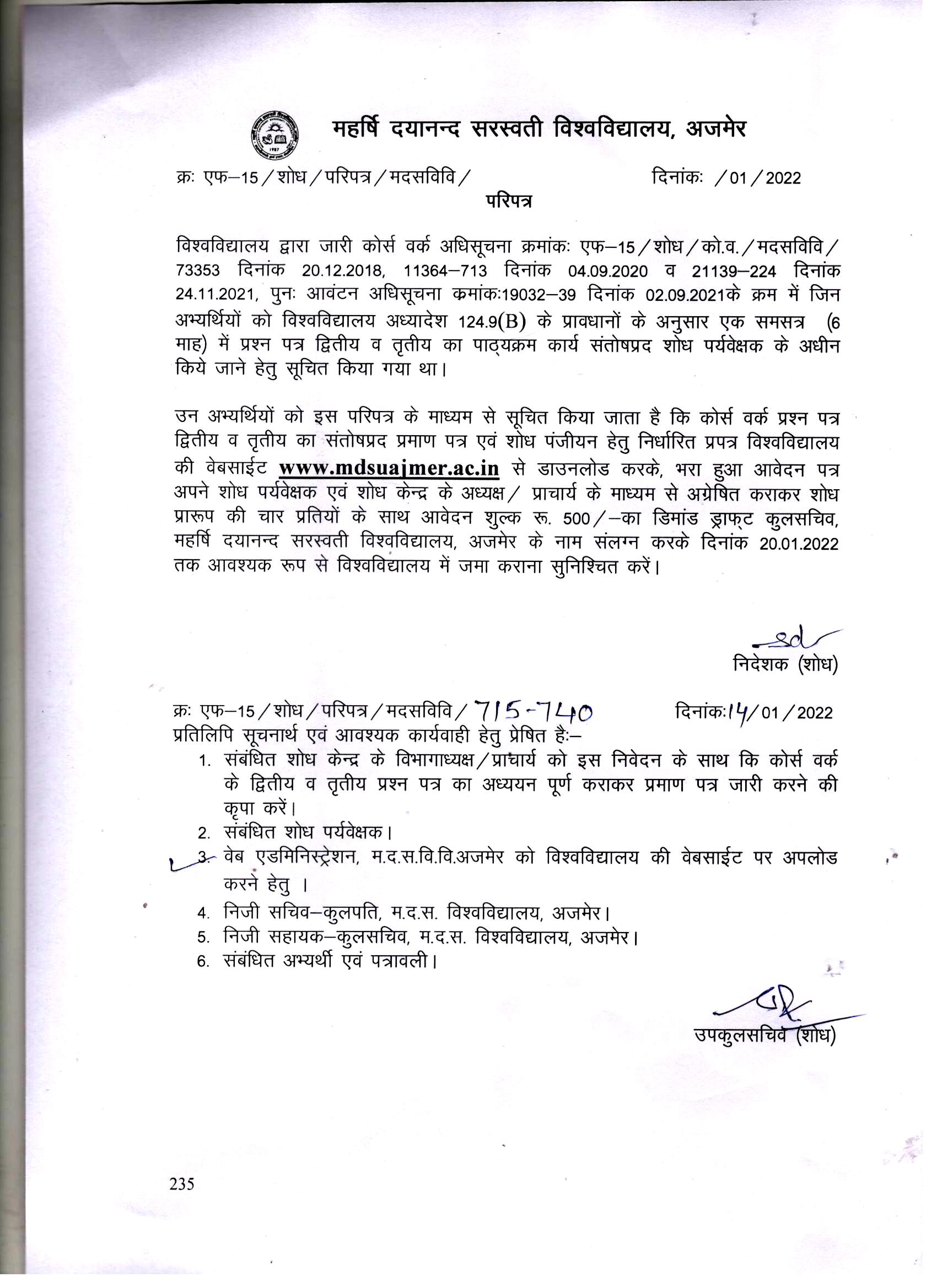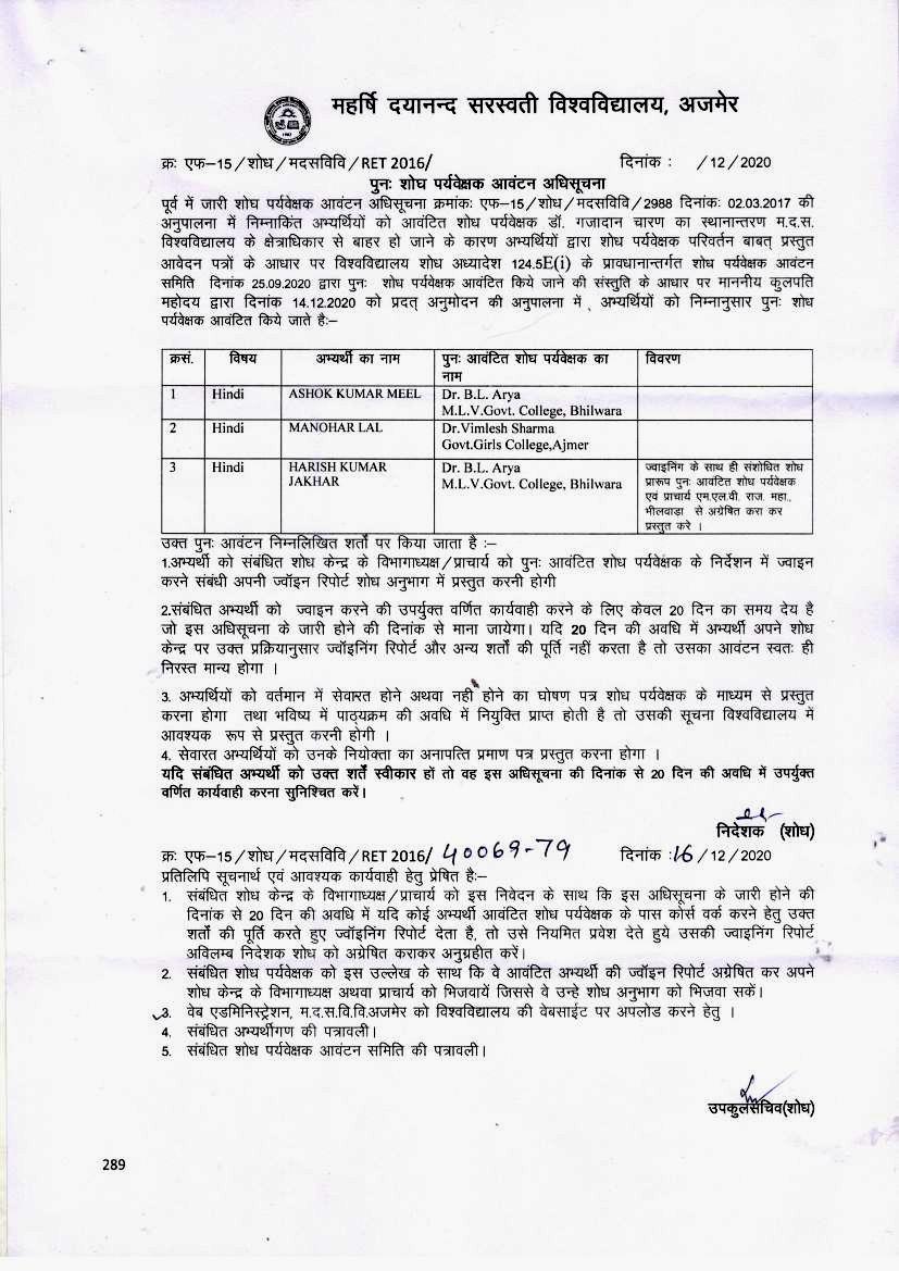 Download• पुन: शोध पर्यवेक्षक आवंटन अधिसूचना पत्र दिनांक 16-12-2020(Hindi)