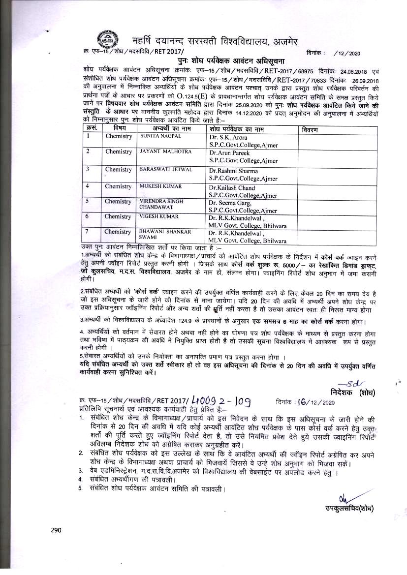 Download• पुन: शोध पर्यवेक्षक आवंटन अधिसूचना पत्र दिनांक 16-12-2020(Chemistry)