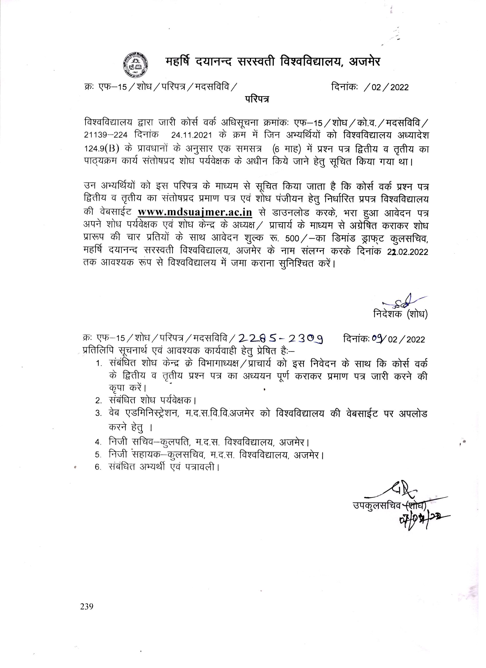 Download• Circular for Course Work IInd & IIIrd