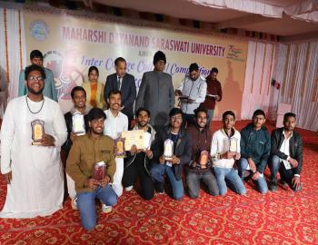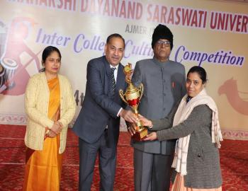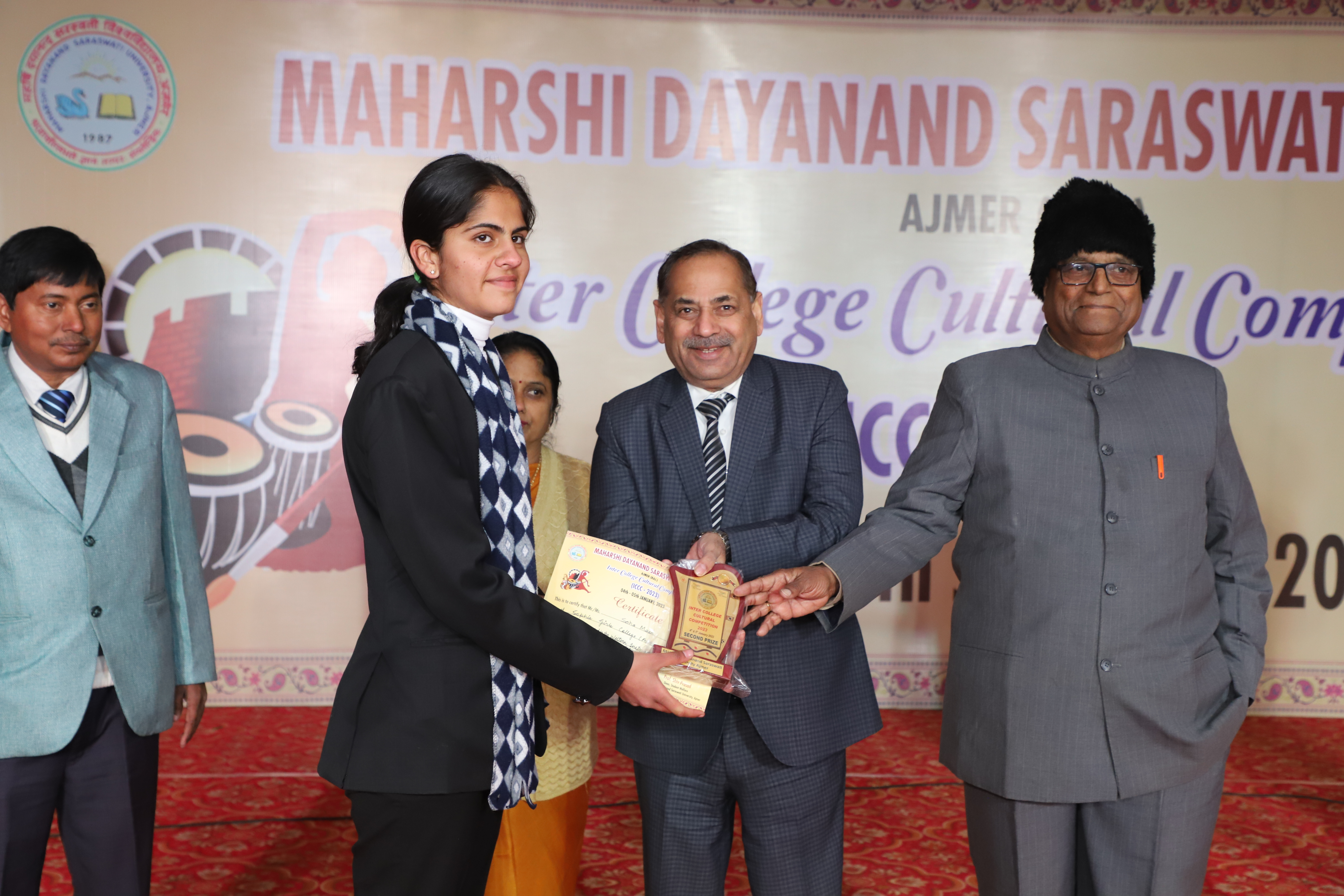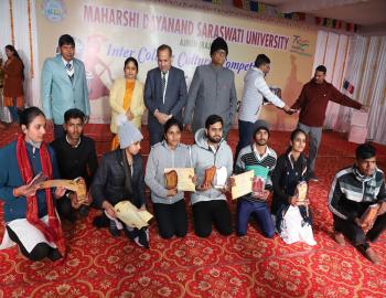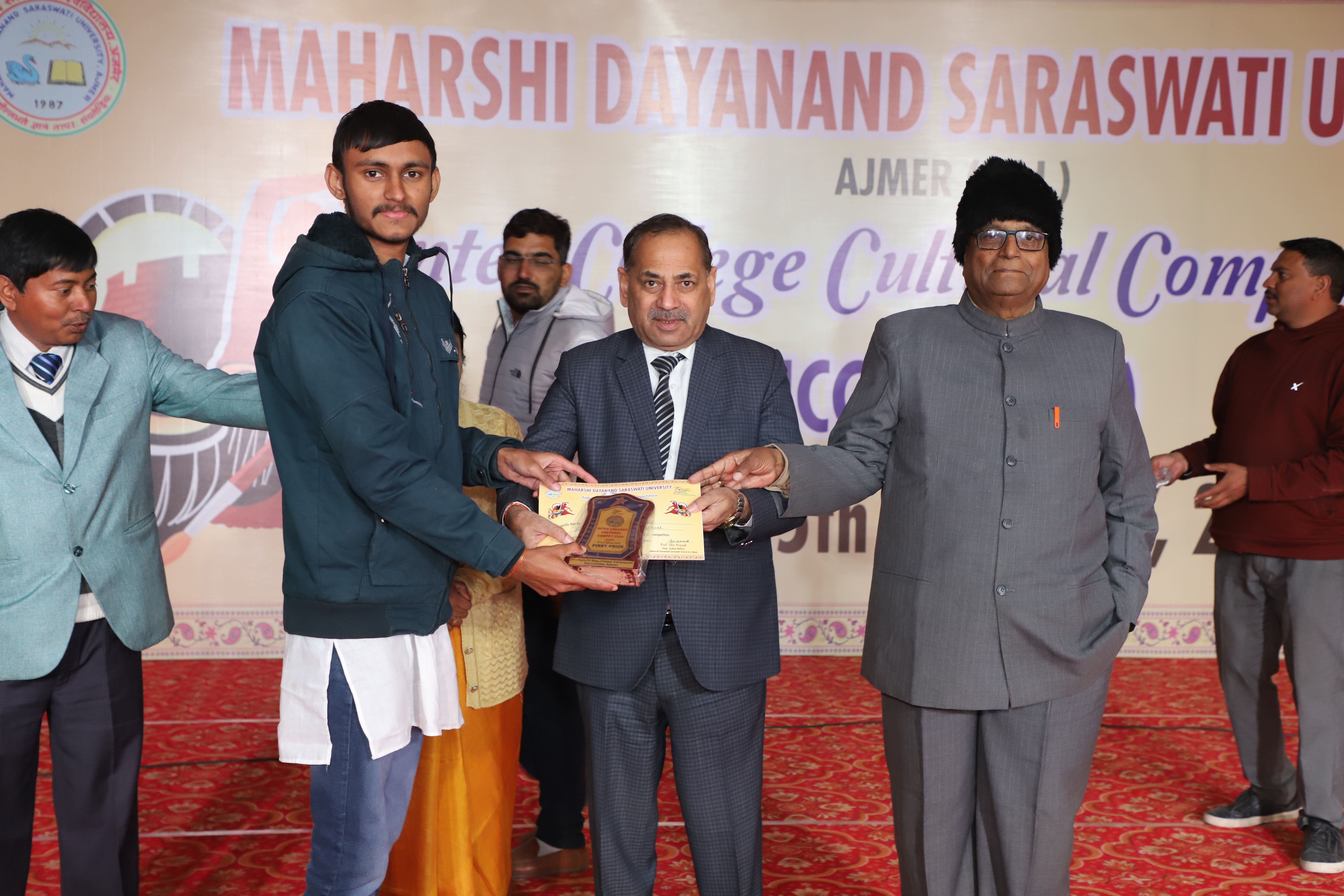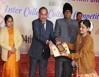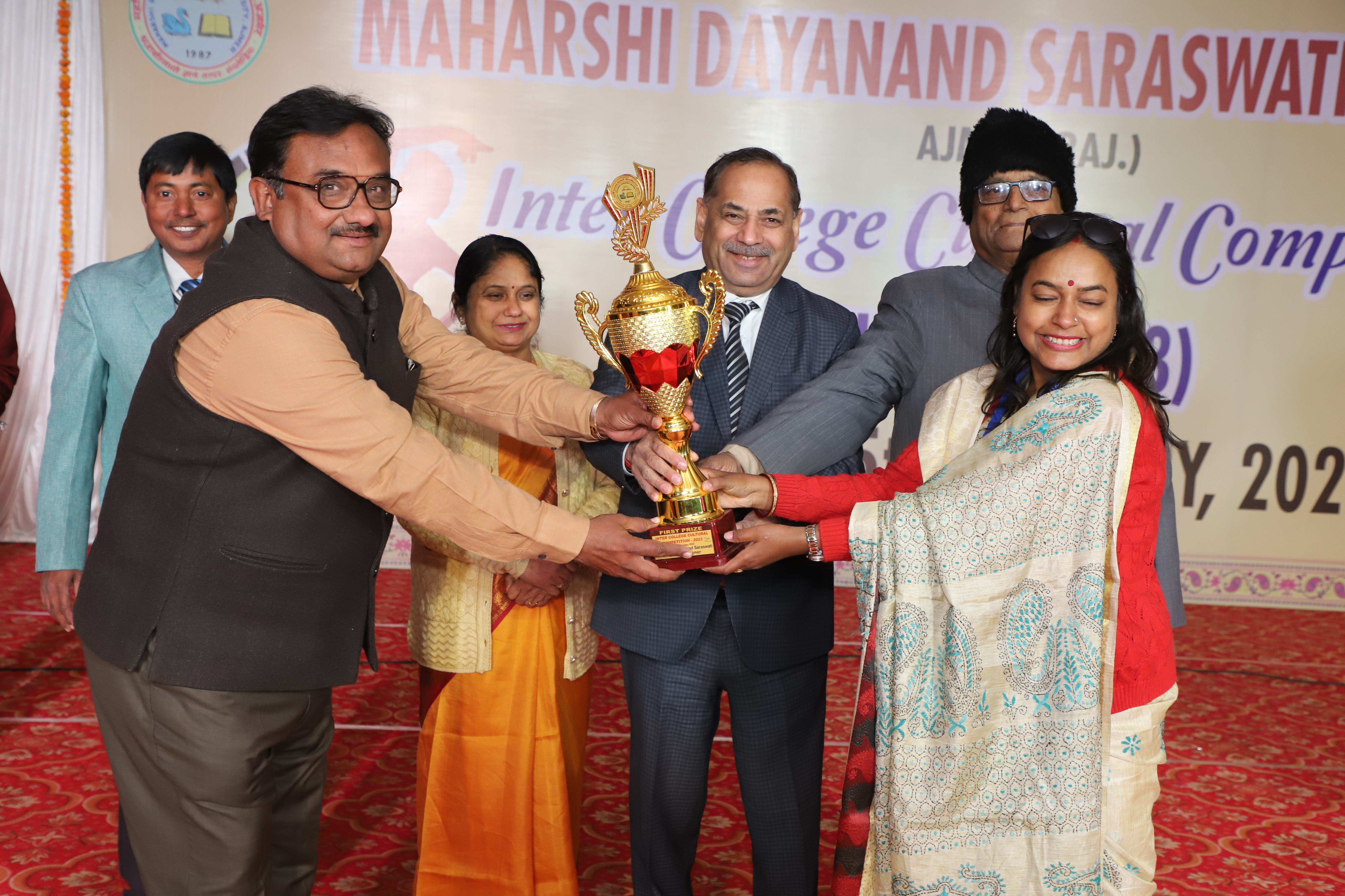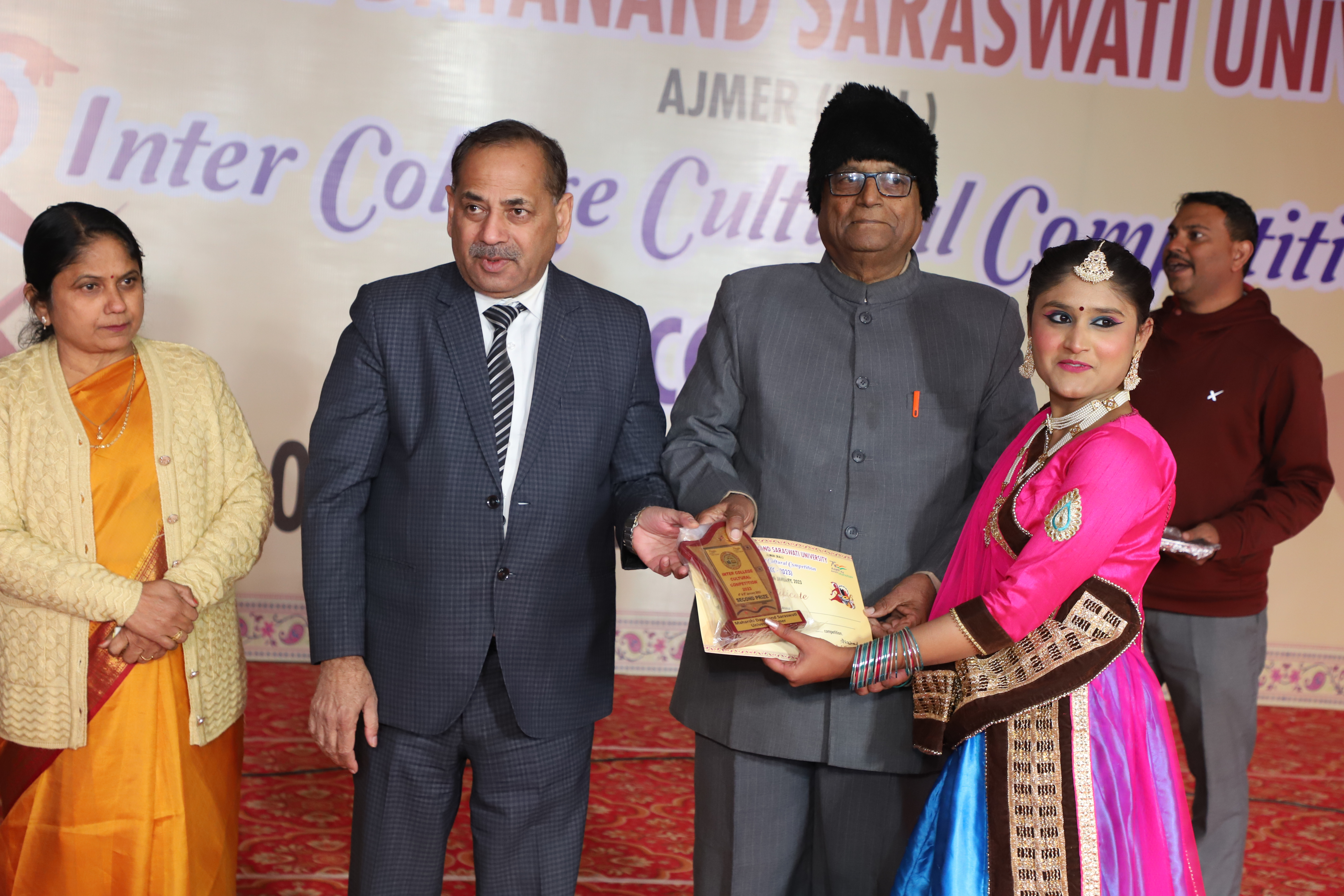 Honorable Vice Chancellor Prof. Anil Kumar Shukla and Special Chief Guest Prof Lokesh Shekhawat Awarding the winner of Inter - College Cultural Competition 2022-2023