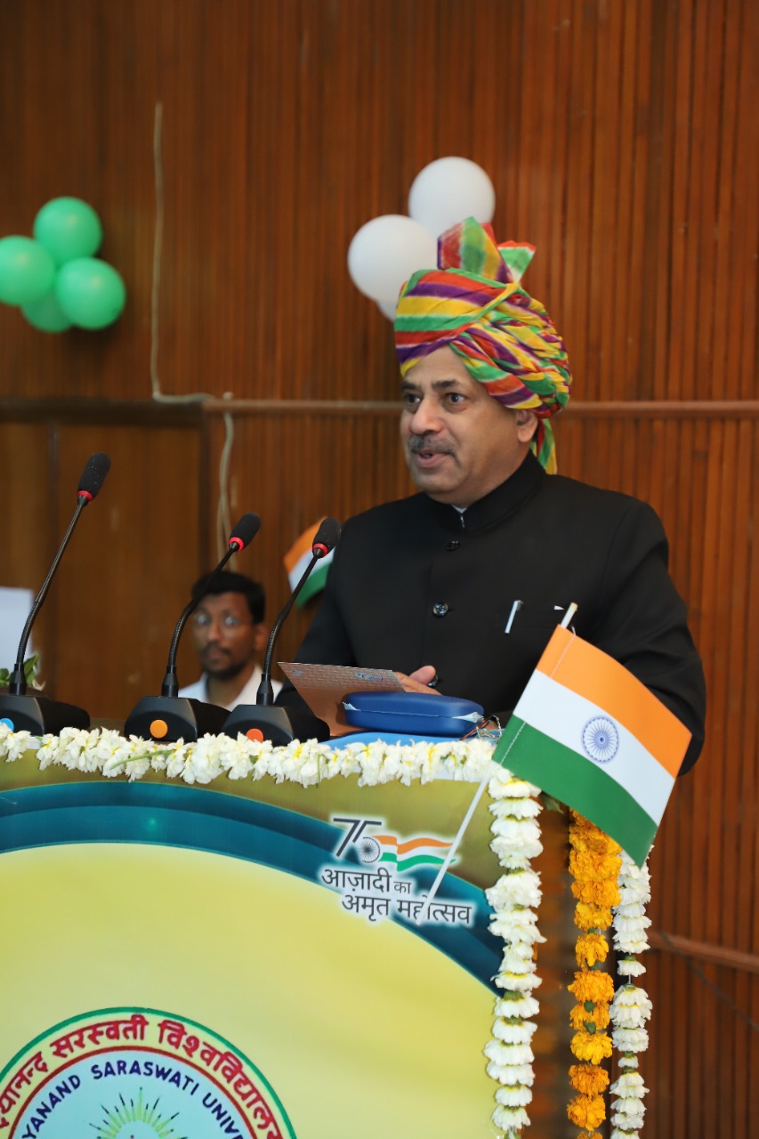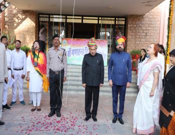 माननीय कुलपति प्रो अनिल कुमार शुक्ला 74वा गणतंत्र दिवस पर धव्ज़ रोहण करते व उद्बोधन देते हुये