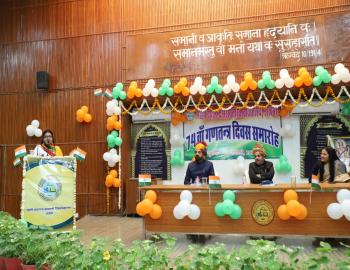 माननीय कुलपति प्रो अनिल कुमार शुक्ला 74वा गणतंत्र दिवस पर धव्ज़ रोहण करते व उद्बोधन देते हुये