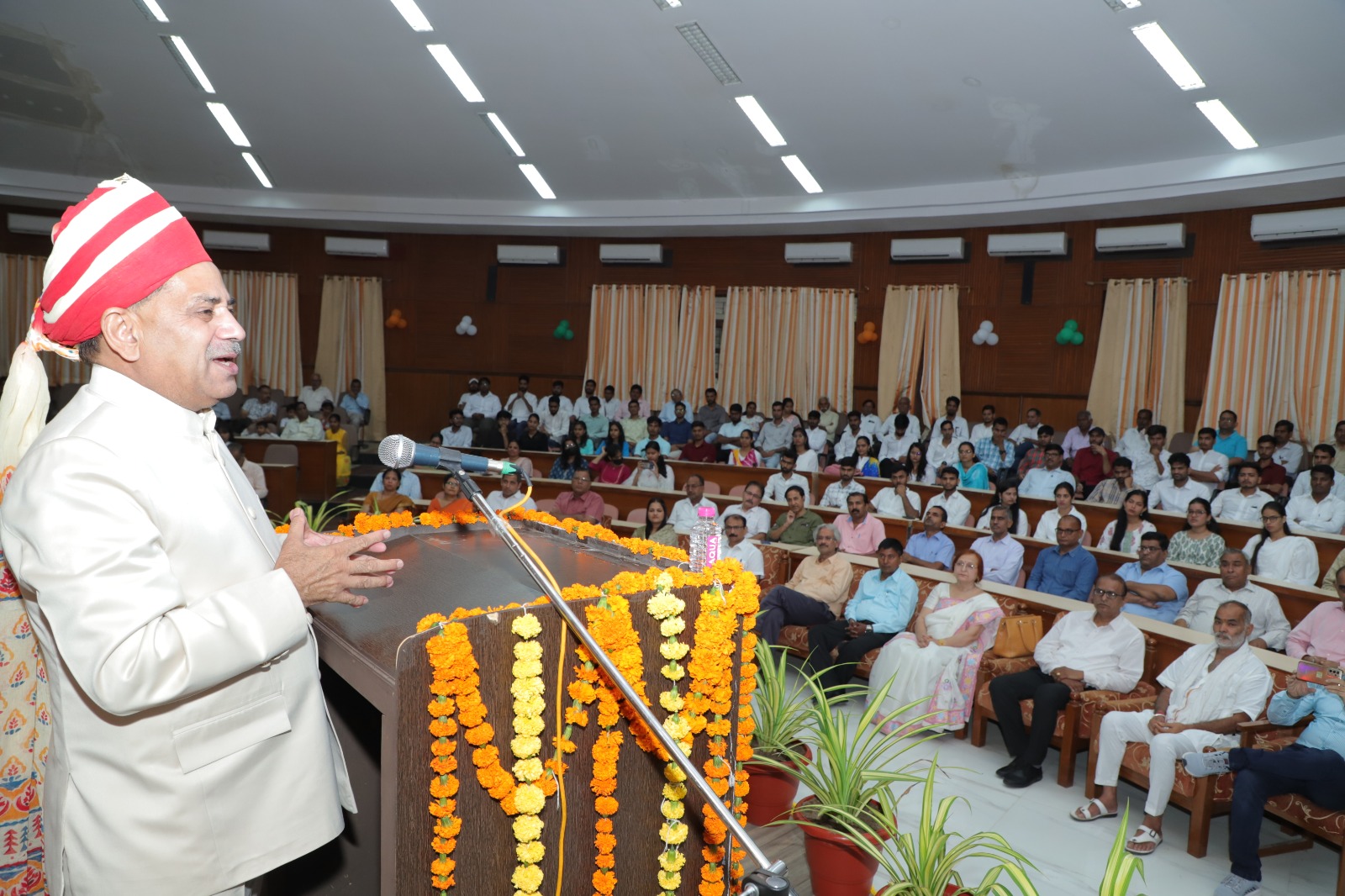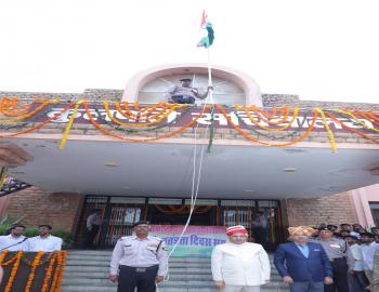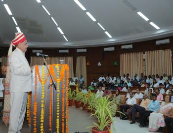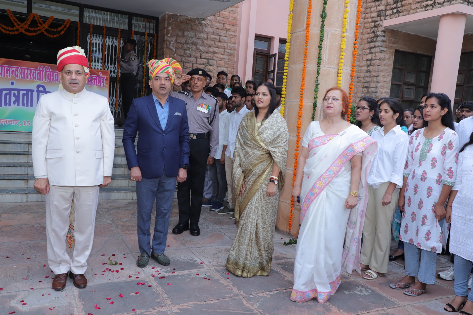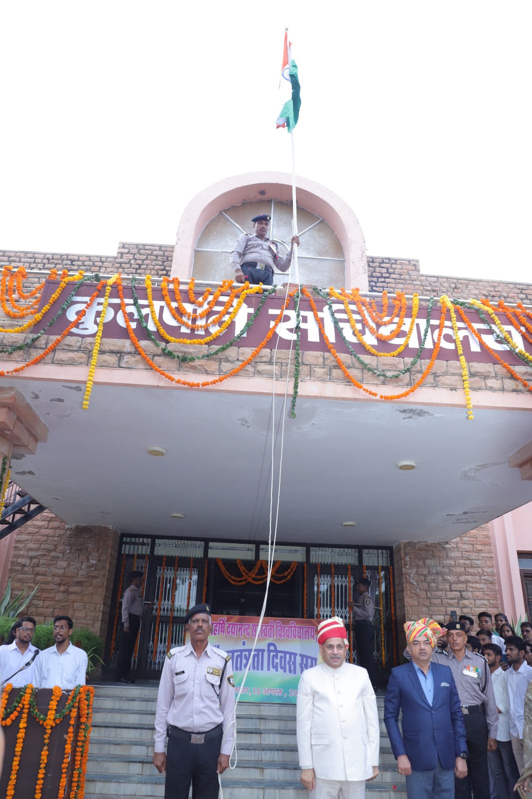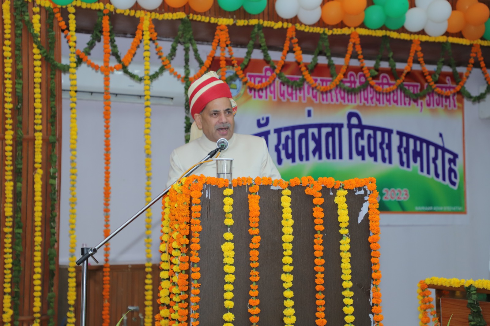 Honble Vice Chancellor addressing the gathering and hoisting the flag on 77th Independence Day.