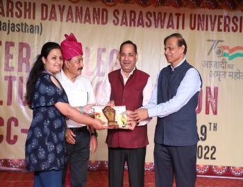 Honorable Vice Chancellor Prof. Anil Kumar Shukla and Chief Guest Prof. Anand Bhalerao Vice Chancellor Central University of Rajasthan ,Ajmer Awarding the winner of Inter - College Cultural Competition