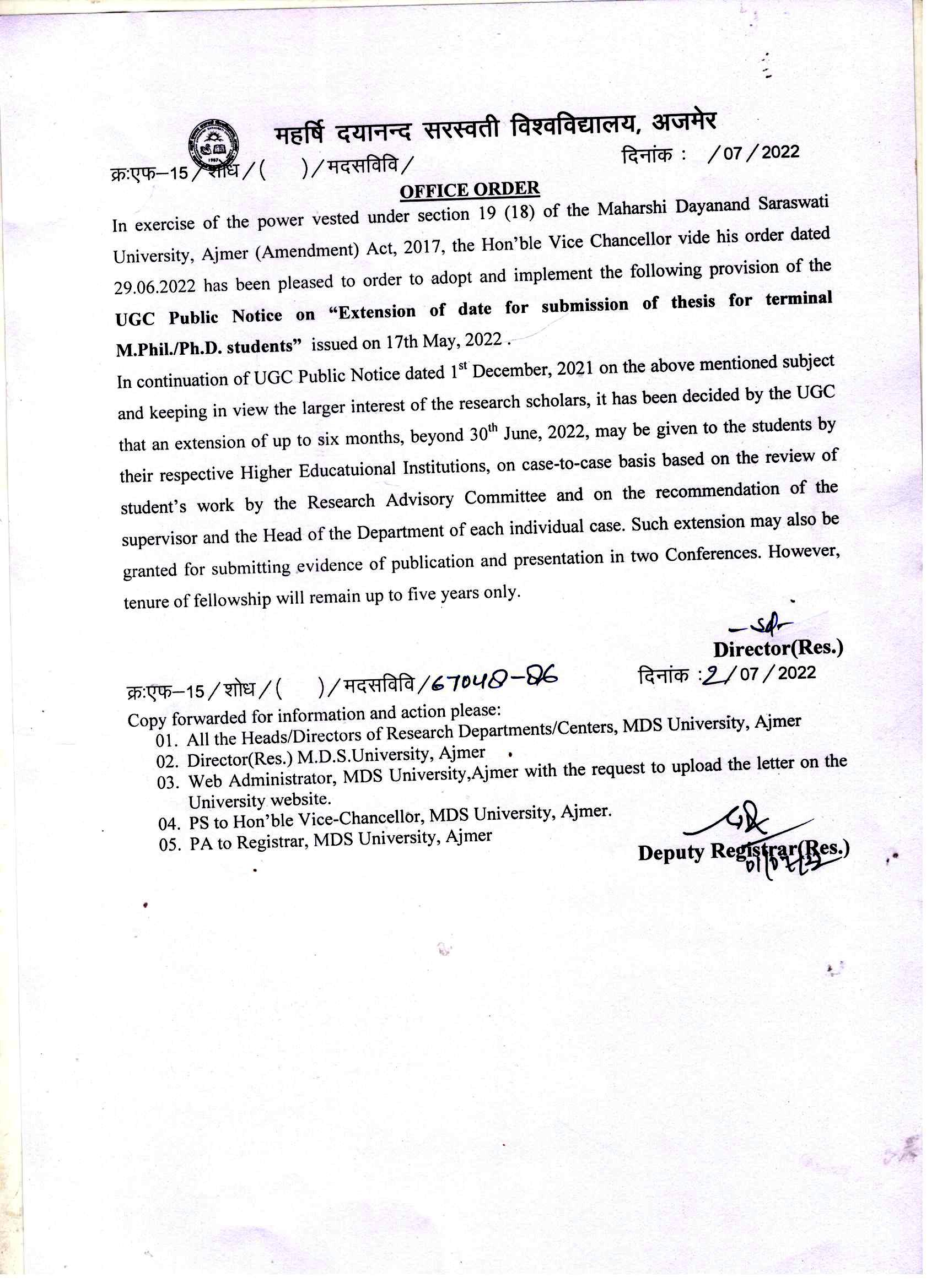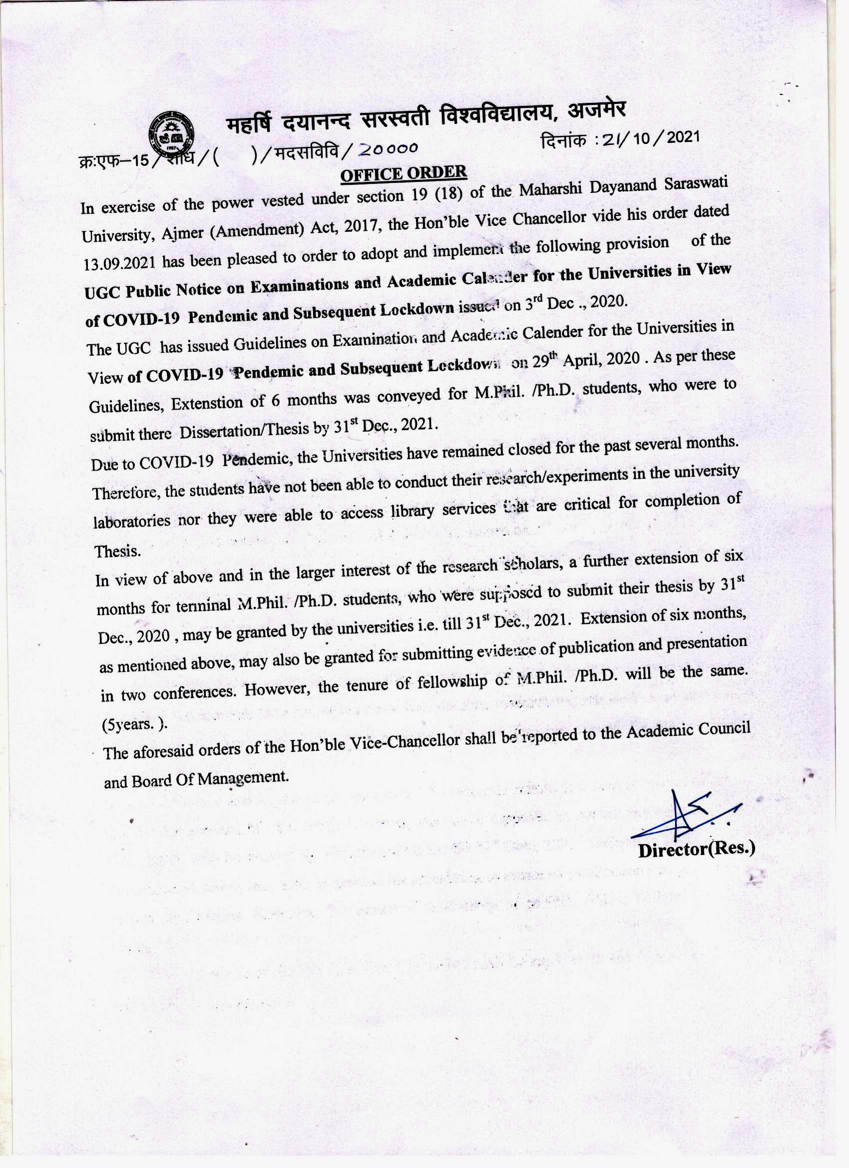 Download• Office Order to submit thesis upto 31st Dec. 2021