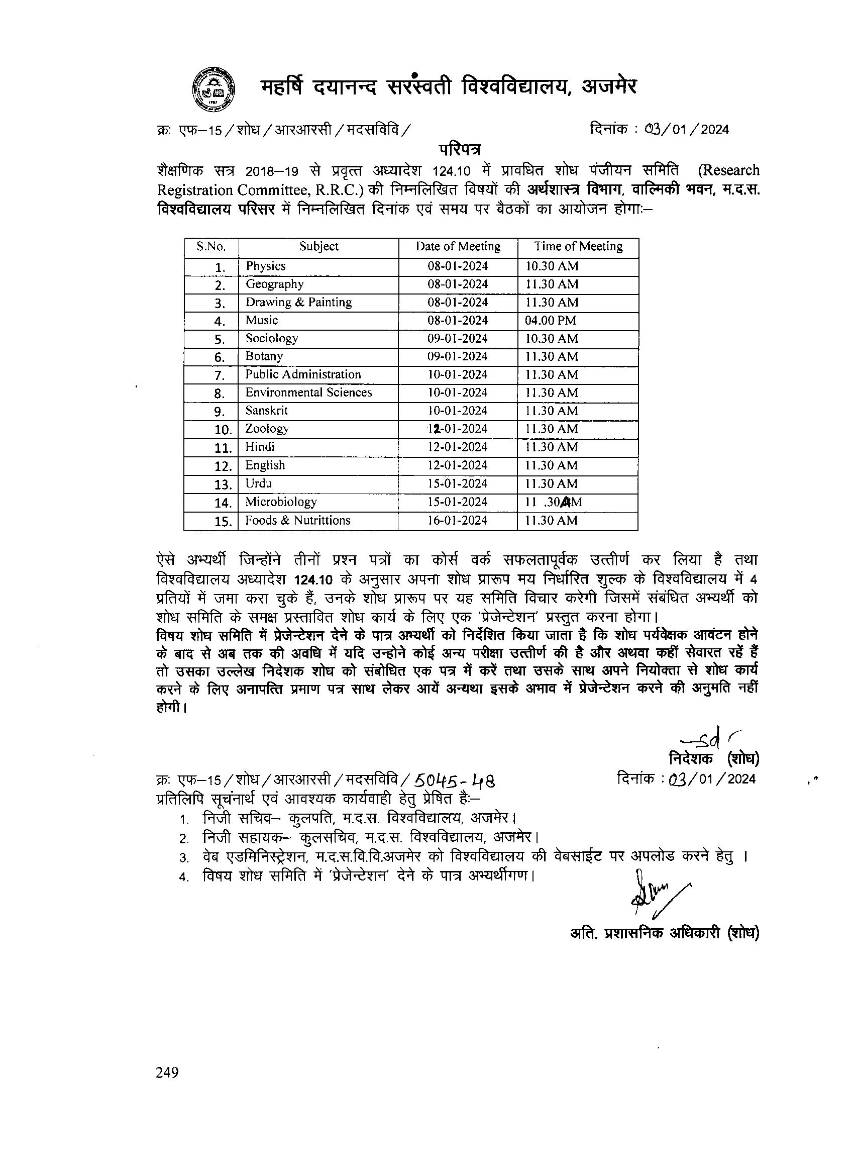Download• RRC Meeting for Subjects: Environment Sci., Maths, Poli. Sci., History, Sanskrit, Geography, Busi. Adm. & ABST