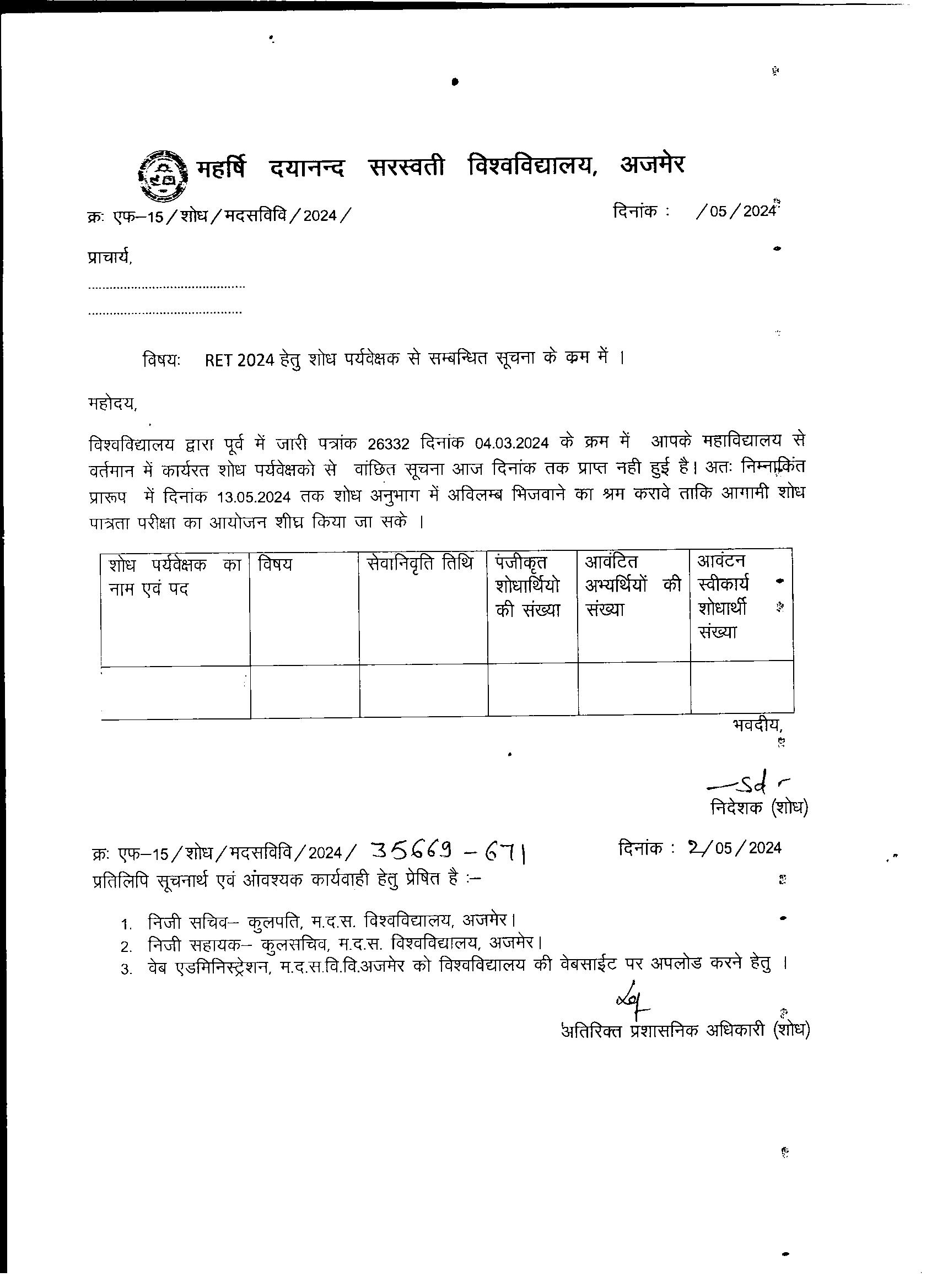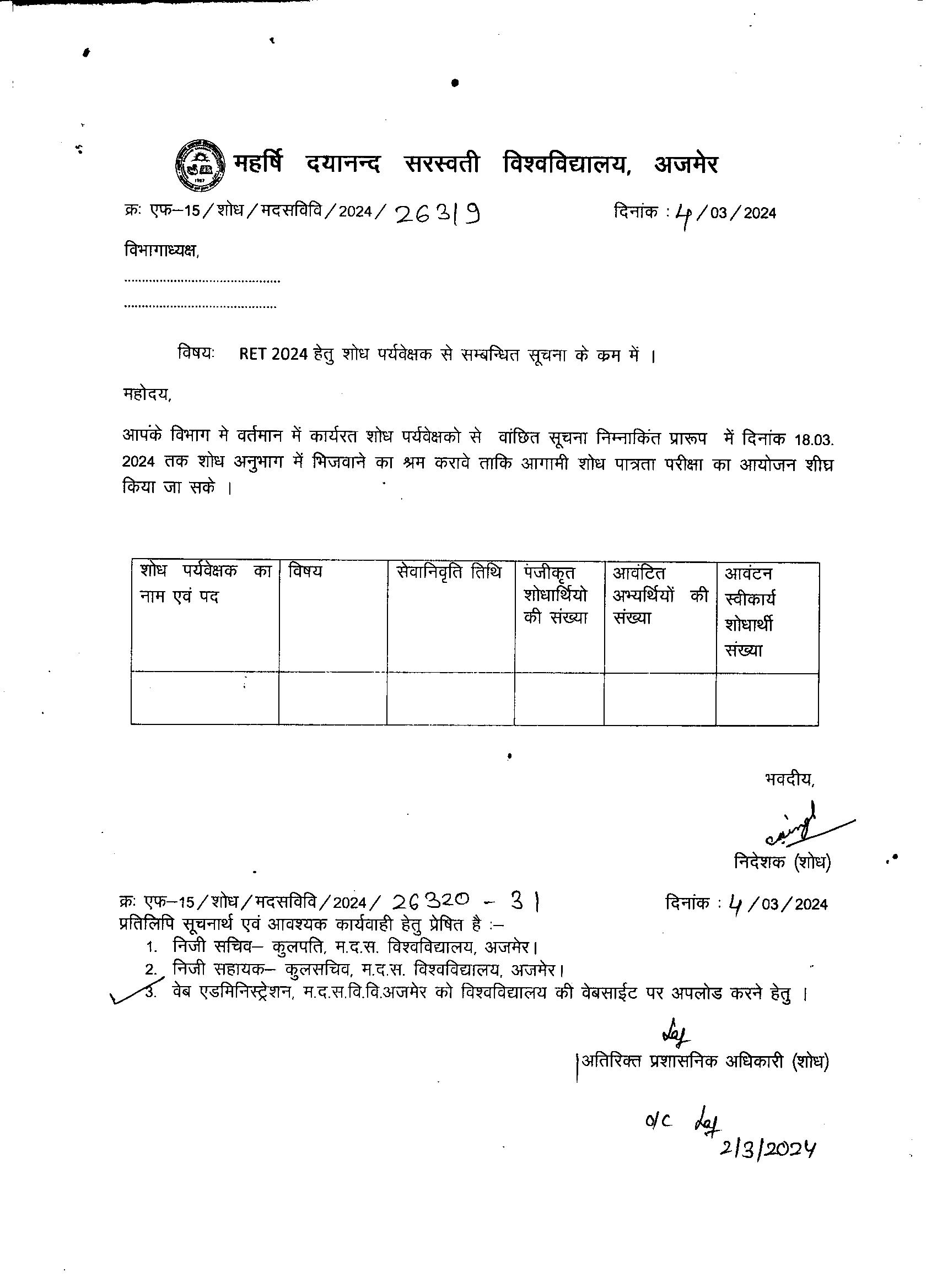 Download• Research Supervisor Allotment Letter(Social Science & Education) For RET 2016