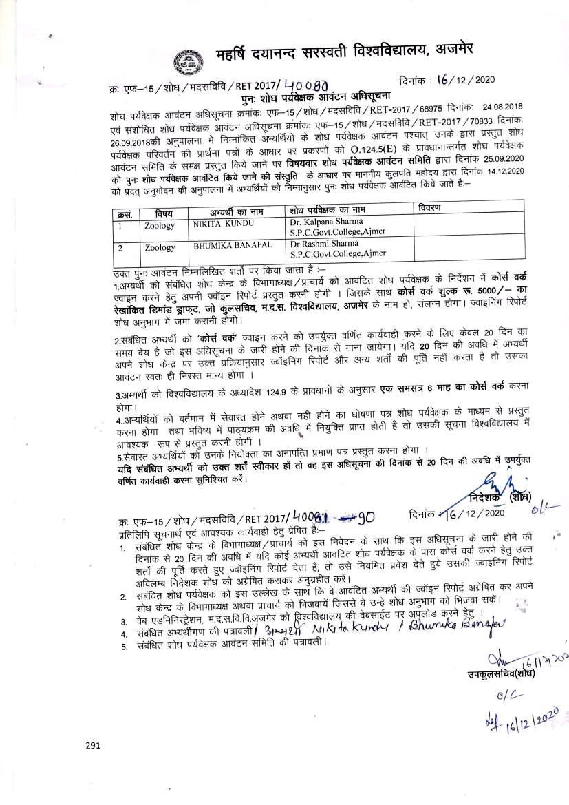 Download• पुन: शोध पर्यवेक्षक आवंटन अधिसूचना पत्र दिनांक 16-12-2020(Zoology)