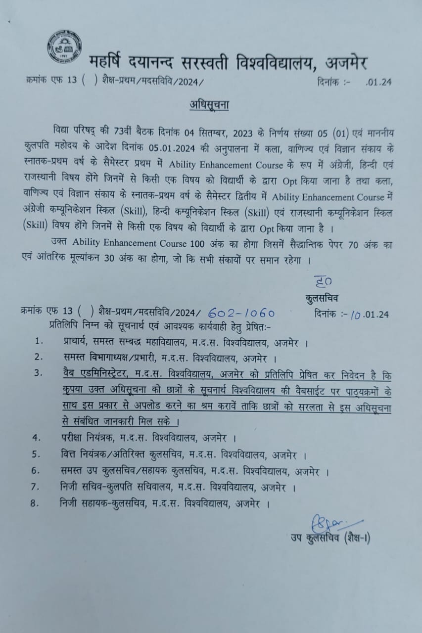 Regarding Notification no F 13 ( ) Acad I/MDSU/2024/30687-31208 Dated 18-9-24 for syllabus |